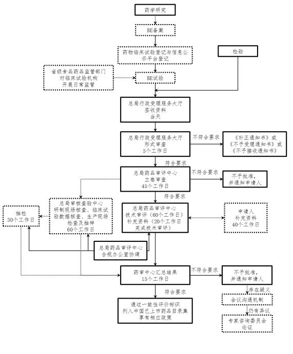 在此次征求意見稿中,還對仿制藥一致性評價(jià)的流程進(jìn)行了梳理,具體流程如下圖: