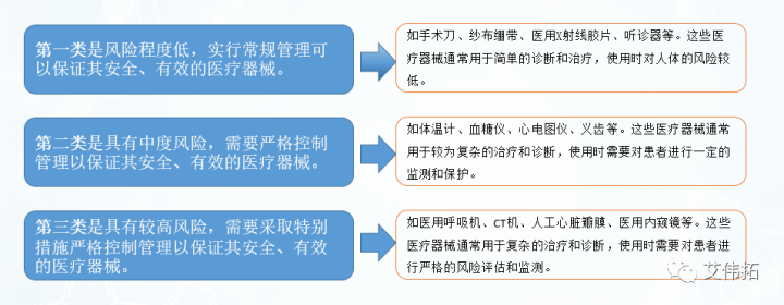 根據(jù)醫(yī)療器械的預(yù)期目的、結(jié)構(gòu)特征、使用方法等因素,評(píng)價(jià)醫(yī)療器械風(fēng)險(xiǎn)程度,根據(jù)風(fēng)險(xiǎn)程度分為三類。