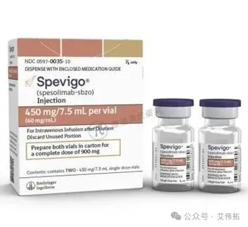 【作用機理】Spesolimab-sbzo是一種人源化單克隆免疫球蛋白G1抗體,通過特異性結合白細胞介素-36(IL-36R)抑制IL-36信號傳導。Spesolimab-sbzo與IL-36R的結合阻止了IL-36R隨后被同源配體(IL-36 α、β和γ)激活以及促炎和促纖維化途徑的下游激活。IL-36R活性降低和GPP耀斑治療之間的確切機制尚不清楚。